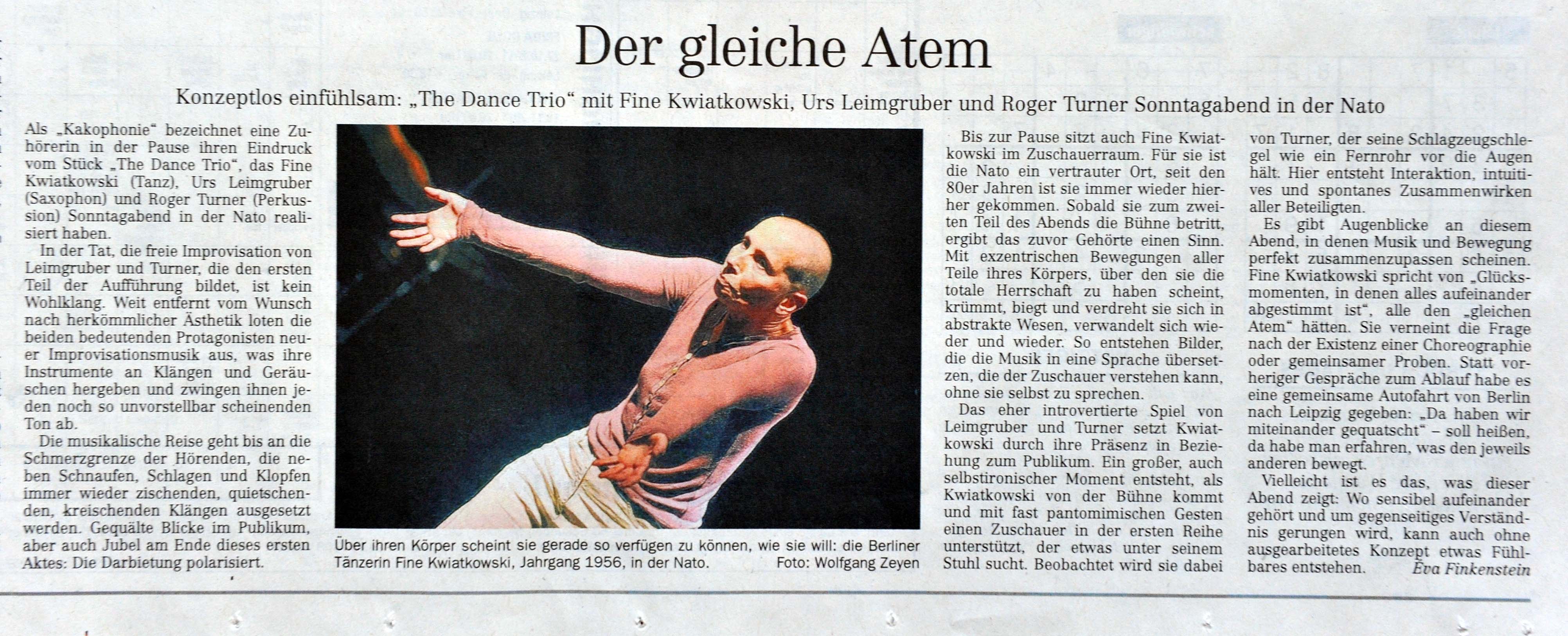 'Urs Leimgruber spielt auf eine so faszinierende Weise Saxophon, dass man glauben könnte, andere Klangerzeuger zu hören. Er weiss auf seinen Instrumenten Trommeln sprechen, Gitarren klingen und Gongs nachhallen zu lassen. Sein Spiel wirkt beinahe entinstrumentalisiert, befreit von Nebenbedeutungen und auch in der komplexen Gestaltung auf unerwartete Weise pur. Klang an sich. ' Bert Noglik