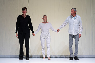 Neue Bilder werden durch das Verschmelzen von Malerei, Körper, Musik und Licht im Raum sichtbar. In der Veränderung liegt auch das Verschwinden im Entstehen von Neuem.