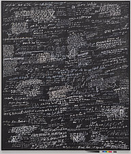 Ihre Malerei traf dann zu Beginn der 2000er mein Inneres. Nochmal später realisierte ich, dass ihre Zeichen und Schriften, die ihre Bilder erzählend unterstrichen, ihren Weg in meinen Tanz fanden. Es war eine schöne Entdeckung und ich arbeitete bewußter damit. Mein sowieso schon markantes Handspiel beim Tanzen erfuhr eine immer größere Dringlichkeit, die sich über Zartheit, aber auch Verkrampfungen äußerte. Jetzt schreibe ich bewußt Zeichen in die Luft, auch auf Böden oder Wände hinterlasse ich sie. Im Gegensatz zu Mona's Zeichen verschwinden meine im Moment ihres Entstehens.