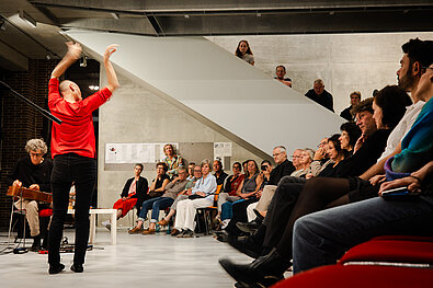 Im Mittelpunkt steht Moffo Schimmenti, ein Bauer und Poet, der sich durch seine sehr individuelle Ausdrucksweise in die Gemüter der Zuschauer*innen singt und spricht. Paola Milio, eine junge Sängerin, ergänzt mit ihrer hellen und gefühlvollen Stimme die brüchige, in die tiefe gehende Stimme von Moffo. Es sind eigene Lieder mit Texten von Ignazio Buttitta, einem Sizilianischen Dichter, der 1997 verstorben ist. Es geht um das Leben, die Natur, um (immer noch) aktuelle politische Themen wie Krieg, Flucht und revolutionäre Ansichten...